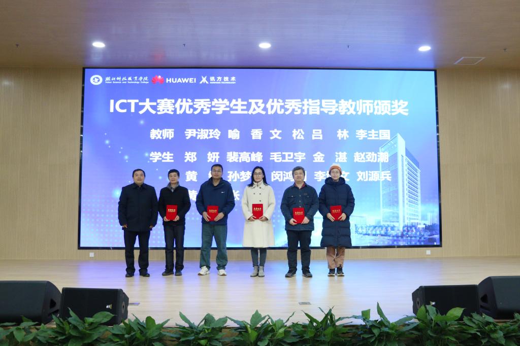 授牌仪式上,依次进行了“领先级华为ICT学院”授牌、ICT学院优秀教师、优秀学生颁奖、ICT大赛优秀学生和优秀指导教师颁奖、校企双方师资互聘并颁发聘书。教师代表李莎莎、学生代表郑妍分别上台发言,分享了自己身为教师、学生在学校华为ICT学院的人才培养体会与经验。